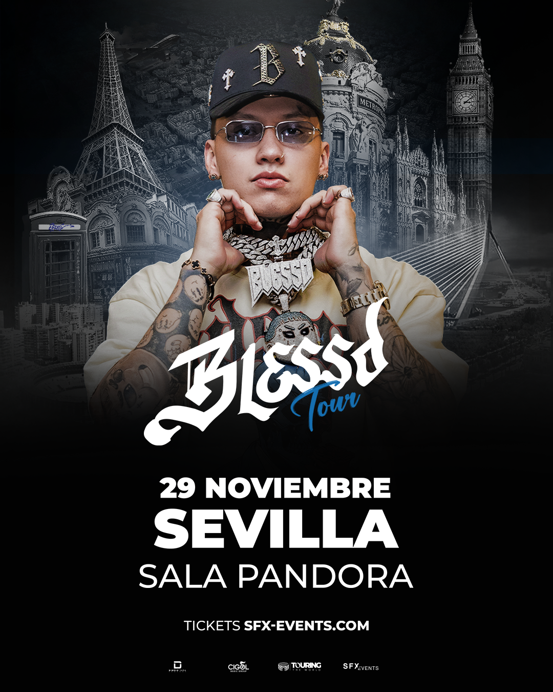 Blessd, el fenómeno de la música urbana, llega con todo su flow a Sevilla. Prepárate para vivir una noche inolvidable con todos sus éxitos que están rompiendo en las calles y plataformas digitales.