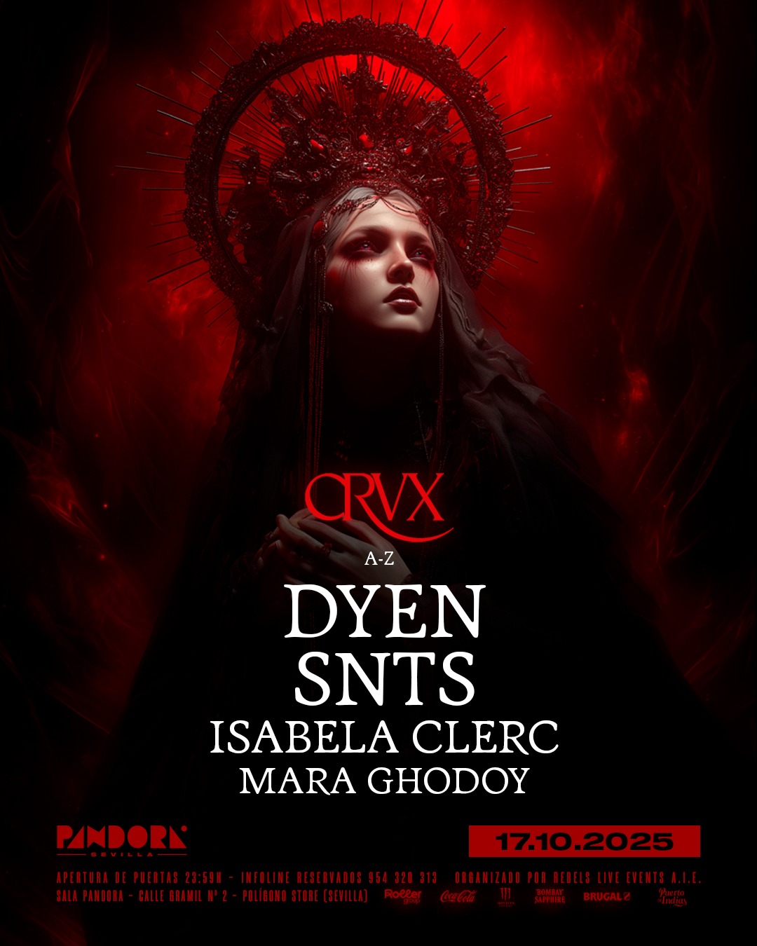 El camino de CRVX esta temporada sigue con un doblete de auténtico infarto. Uno que debuta, el otro que regresa. SNTS y Dyen prometen dinamitar Pandora en una noche de altos vuelos junto a Isabela Clerc y Mara Ghodoy. No te lo pienses porque este octubre, CRVX vuelve a dominar Sevilla.