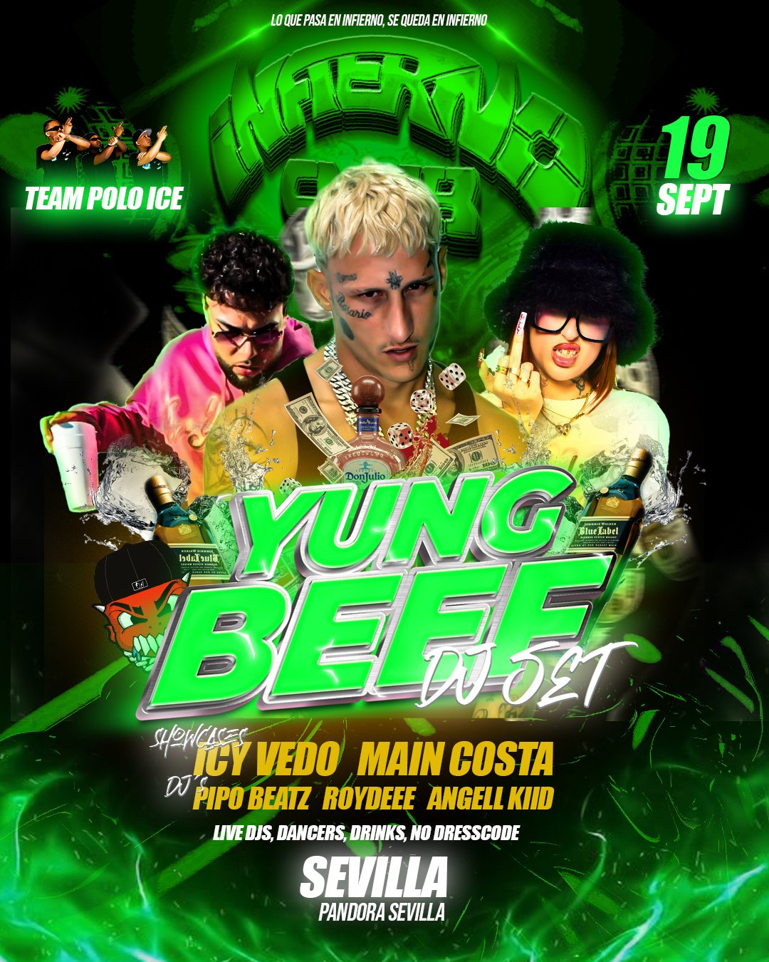 La fiesta favorita de Satanás. Pandora baja al averno con el regreso de Infierno Club para pasar una noche de puro bellaqueo con el mejor trap y perreo con el Rey de esto, Yung Beef en formato DJ set. Fiesta solo apta para pecadores, tenemos a Cerbero en puerta pasando lista.