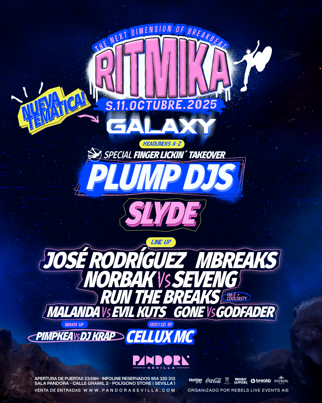Ritmika no hace más que evolucionar. Por eso os traemos nuestra primera fiesta temática de breakbeat: GALAXY. Sumérgete en el espacio de Pandora y de los ritmos rotos y vive una noche legendaria.