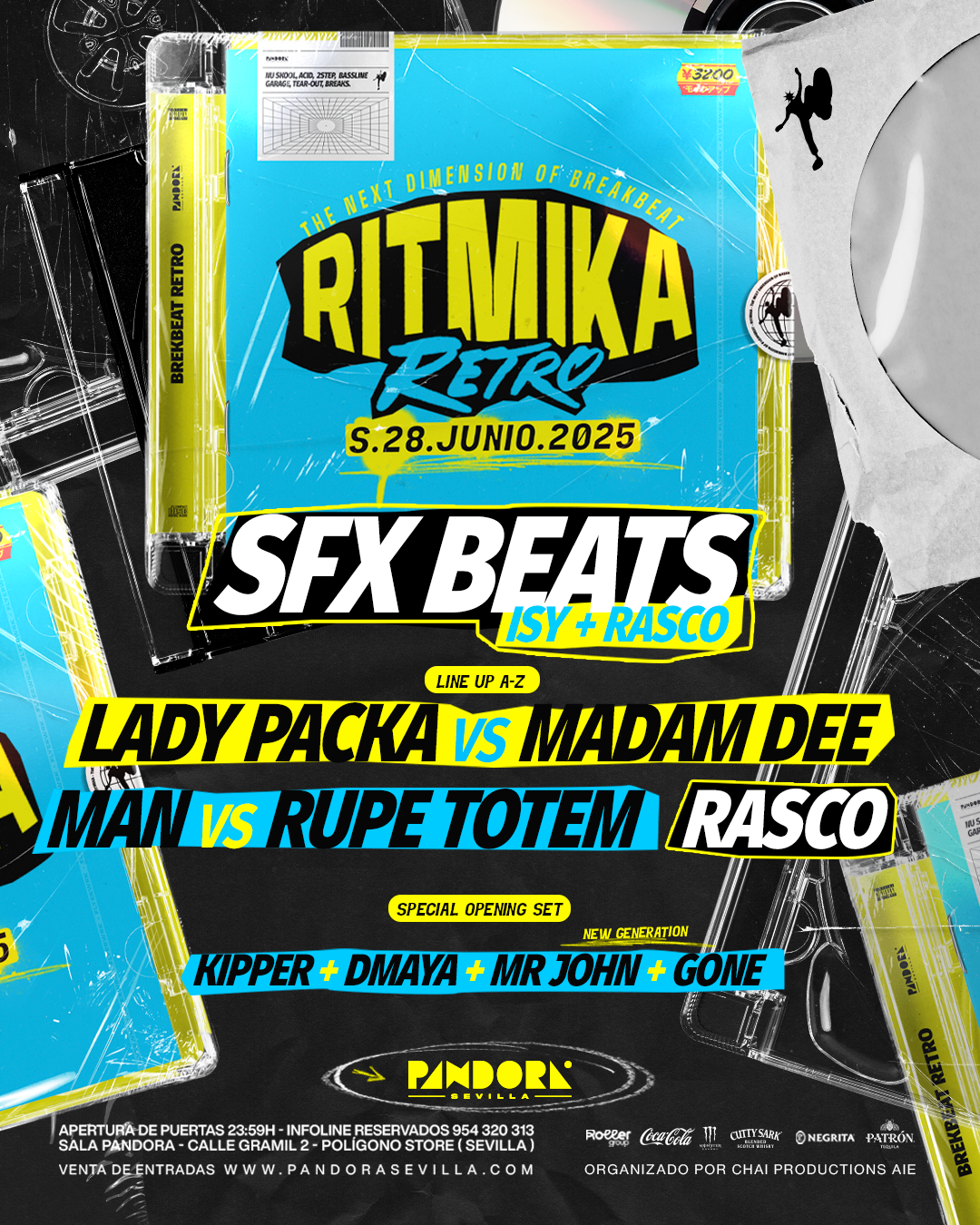 Hacía mucho que el sonido breakbeat más retro no tenía su hueco en Pandora. Hasta el día de hoy, donde os traemos este cartelazo para que bailes en tu club favorito con los sonidos rotos de toda una generación con shows poca veces visto como SFX BEATS, el combo de Rasco e Isy, o vs entre Lady Packa y Madam Dee o Man vs Rupe Totem.